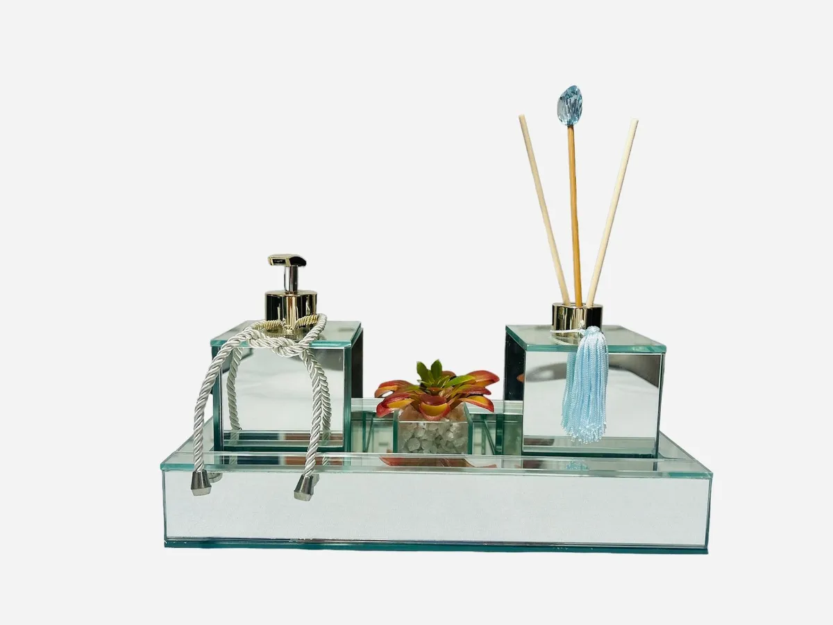 A decoração espelhada é perfeita para um toque de elegância e praticidade ao seu banheiro. Com um design moderno e sofisticado que se destaca pela cor espelhada, combina facilmente com qualquer estilo de decoração, sendo de alta qualidade e estilo único para o seu banheiro.O seu Lavabo vai ficar muito mais bonito, elegante e perfumado! O Kit irá elevar o patamar do seu ambiente!